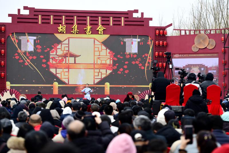 2月28日,拥有800余年历史的胡集书会在山东省滨州市惠民县开幕。来自天南地北的曲艺艺人汇聚胡集、登台献艺,为群众献上了一场精彩纷呈、韵味浓厚的传统文化盛宴。