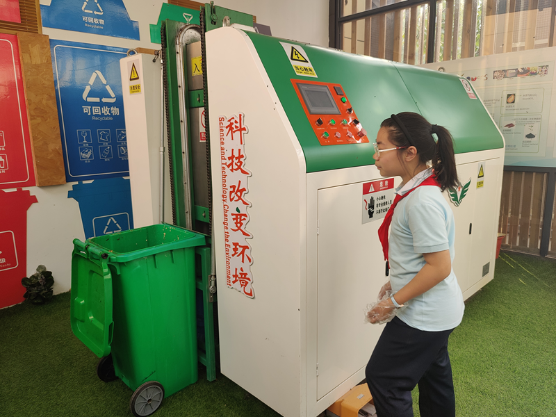 10月13日,在石家庄市裕东小学的社会实践课上,同学们正在体验将厨余垃圾进行生物降解。新华网 李然 摄